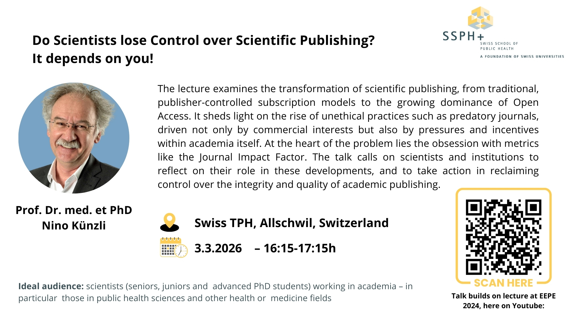 Join us at lecture by Prof. Dr. med. et PhD Nino Künzli "Do Scientists lose Control over Scientific Publishing? It depends on you!"